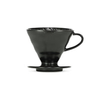 Made from the highest quality porcelain, the ceramic Hario V60 achieves maximum heat retention. From top to bottom internal ribs support natural flow of water and help deliver a "clean" cup. Designed to be placed on top of a cup or carafe, it can brew up two to four cups of coffee at a time.